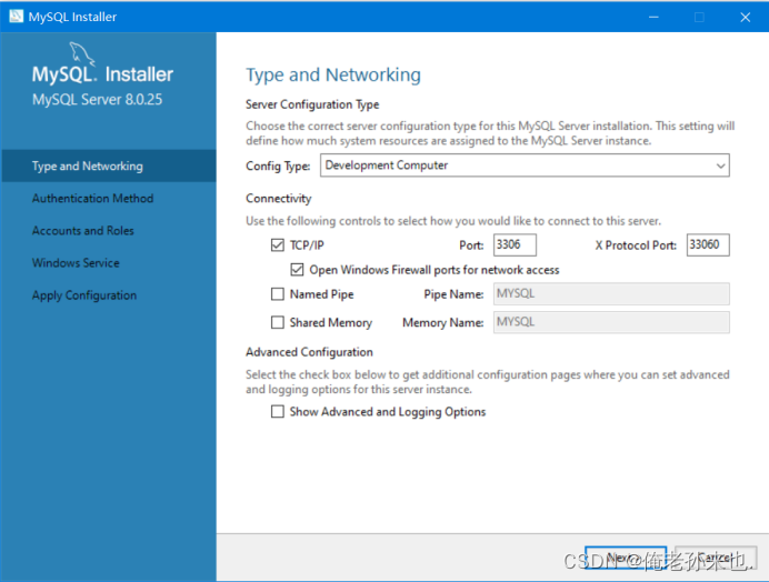 9.配置MySQL的端口号和网络配置的,默认点击Next.