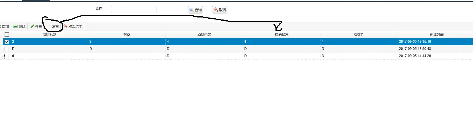 点击发布按钮 推送状态要改为1