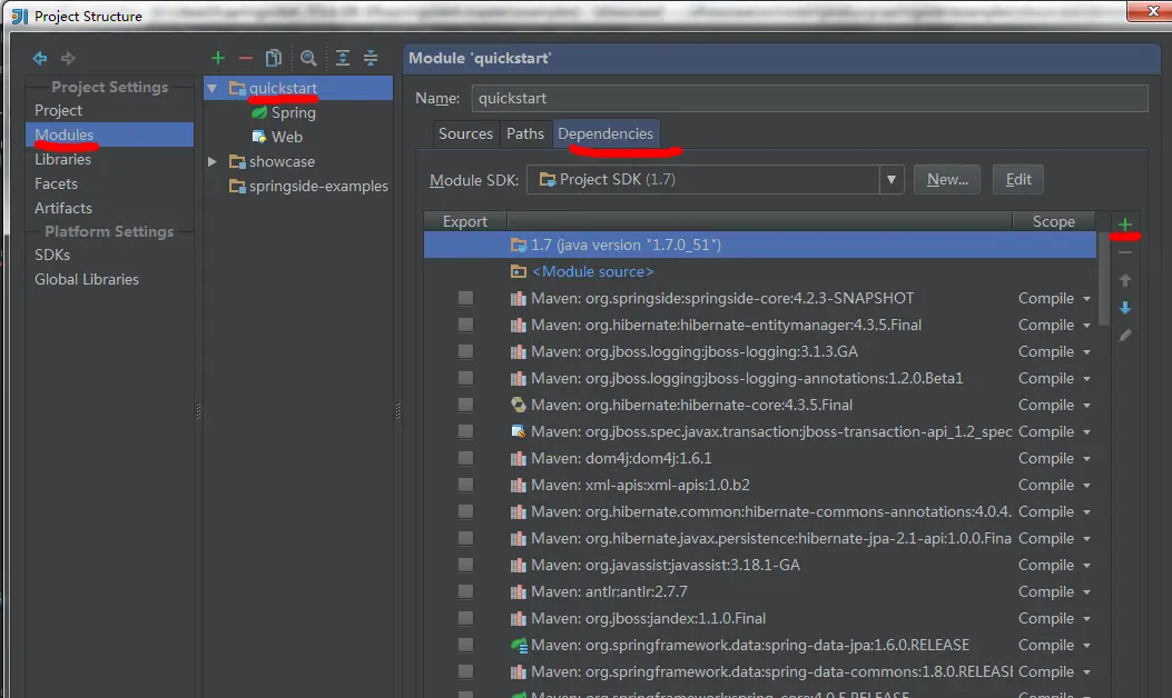 打开 File -> Project Structure -> Modules -> Dependencies ->绿色 加号 -> 1. Jars + dep....