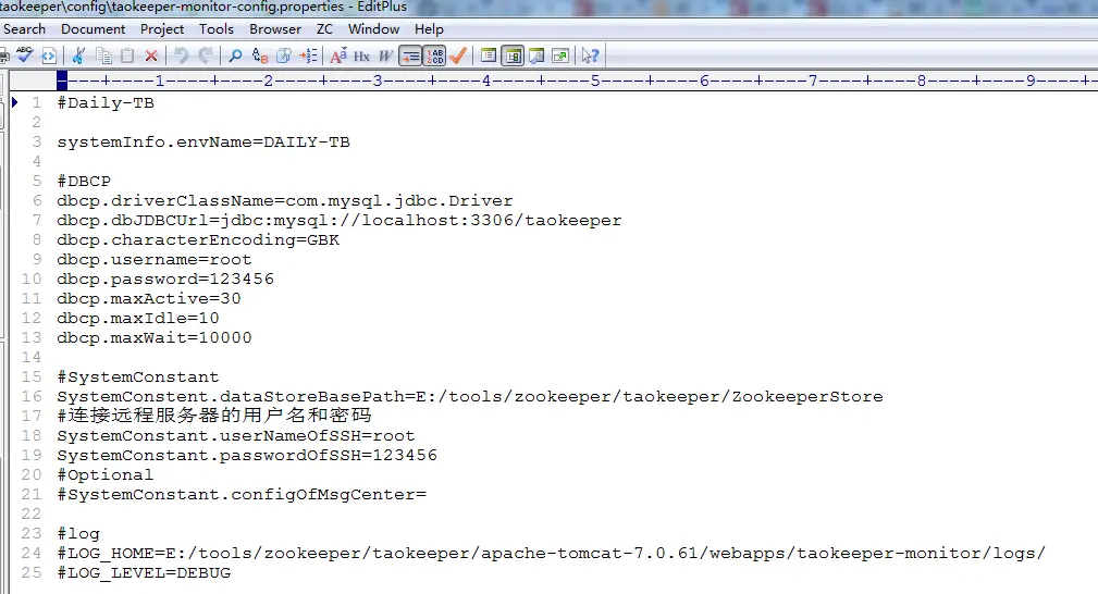 | 1 | set JAVA_OPTS=-DconfigFilePath="E:\tools\zookeeper\taokeeper\config\taokeeper-monitor-config.properties" |