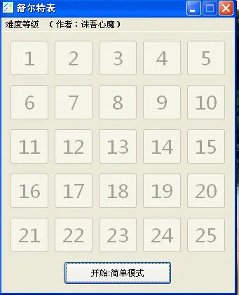 求助 我想要一个舒尔特方格的编写代码 最好是几种可以全平台的 (windows XP—windows10 Android linux Ubuntu)都可运行 我是个初学者 就连代码怎么转换成程序都不知道。如果可以请在代码的后面加个小小的注释(在此先向你说声谢谢)代码在编译的过程中需要什么软件或者需要什么样的环境 请也尽量写的详细一点。